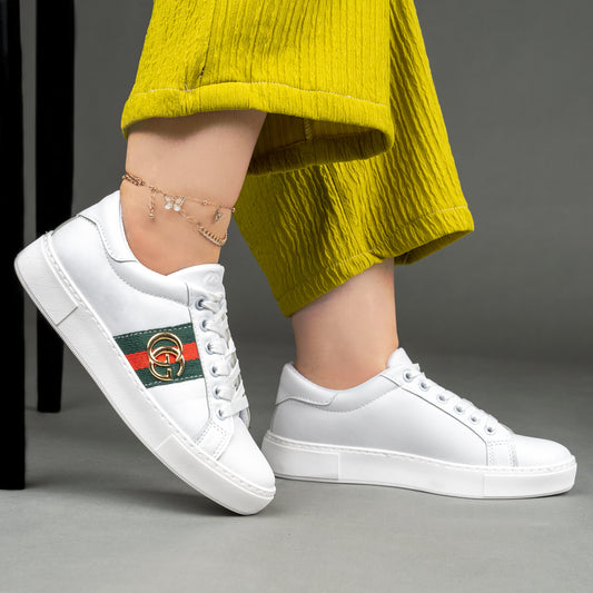 حذاء رياضي مسطح نسائي GG-100 أبيض