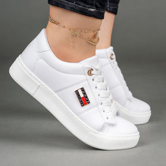 حذاء رياضي مسطح نسائي W-105 أبيض